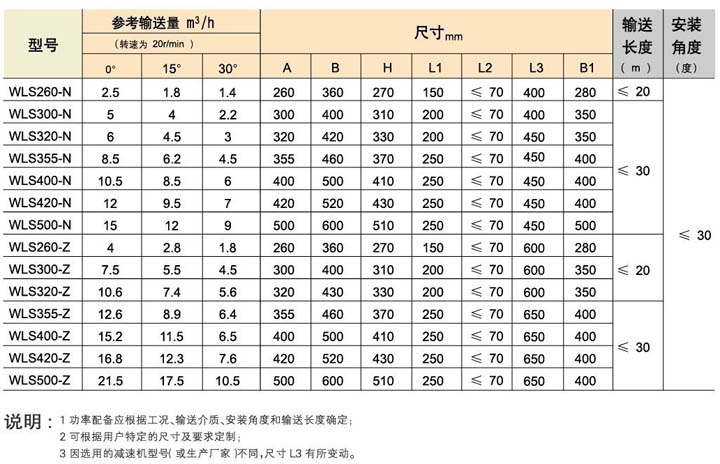 WLS型無軸螺旋輸送機由驅動裝置、無軸螺旋體、U型槽、內襯板、蓋板、進料斗、排料口等組成。其工作原理為:物料從進料斗進入輸送機內,由旋轉的無軸螺旋推至出料口送出。