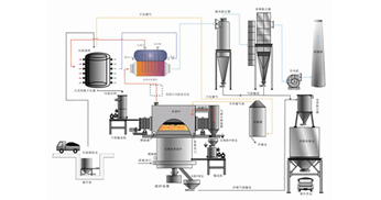 4.熱風爐產生的煙氣(或生產廢熱煙氣)經調溫后進入轉子干化器,對污泥進行加熱干化。