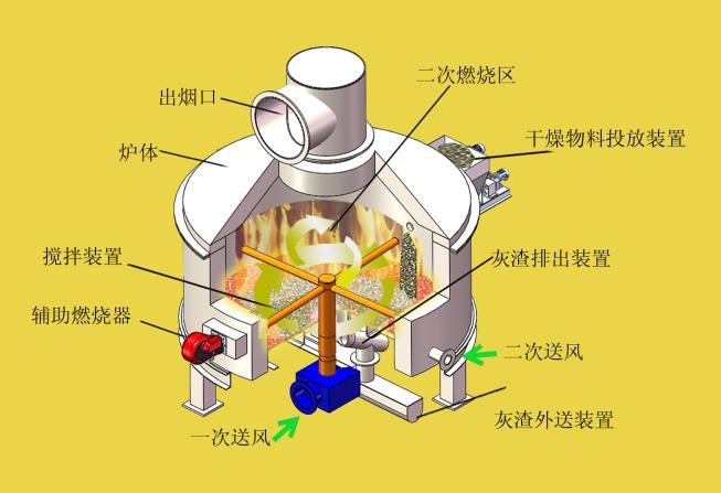 (2)焚燒物料旋轉攪拌前進,三種傳熱方式并存一爐,熱利用率較高;